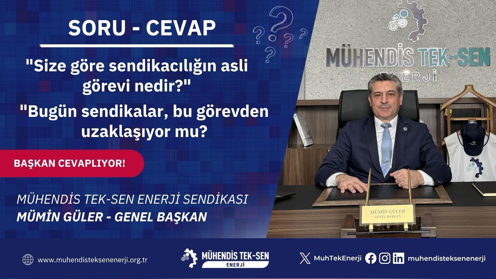 Mühendis Tek - Sen ENERJİ Genel Başkanı Mümin Güler, sendikacılığın temel amacına ilişkin önemli değerlendirmelerde bulundu. Güler, sendikaların asli görevinin siyaset üretmek değil, çalışanların hak ve menfaatlerini korumak olduğunu vurguladı.